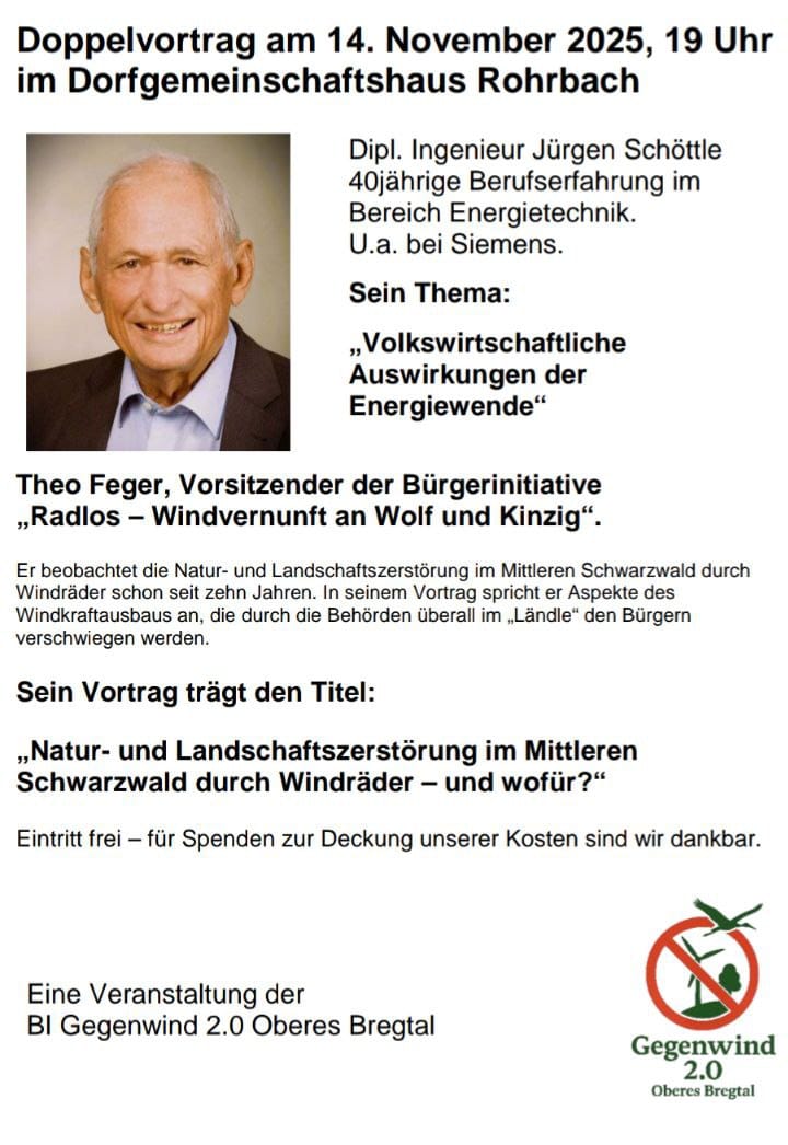 Die BI Gegenwind 2.0 Oberes Bregtal ist der Meinung, dass 8 riesige WEA auf geringem Raum, wie bisher beantragt,
